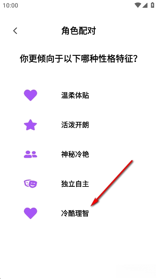 再次选择角色性格特征倾向