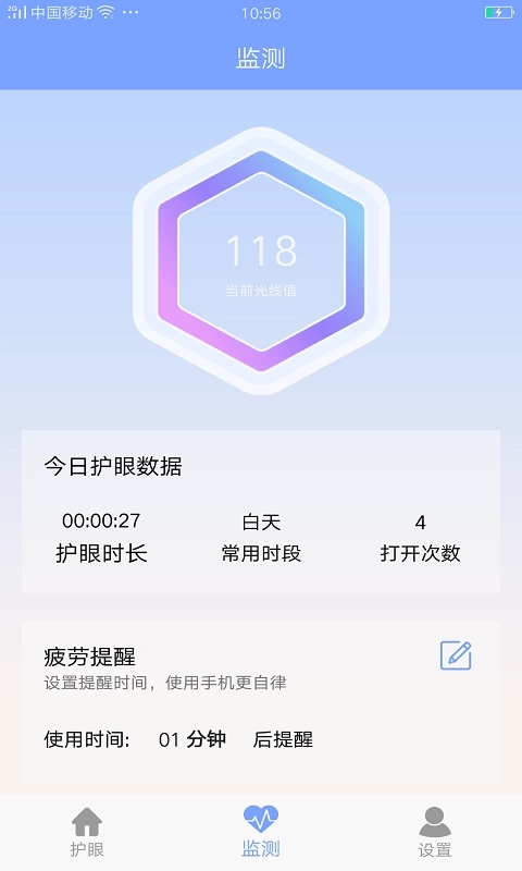 4、数据监测,查看实时数据,关注每日用眼情况
