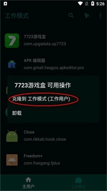 6、打开软件后,选择一个应用克隆到工作模式