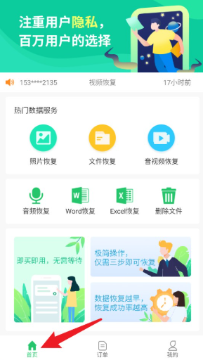 1、首页提供照片、文件、音视频等多种恢复选项,供您自由选择。
