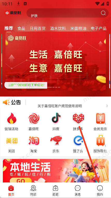 嘉倍旺商城是一款融合线上购物与积分抽奖功能的电商平台。进入商城后,各类优质商品琳琅满目,资源十分丰富,点击即可直接下单购买。其最新版本整合了淘宝、京东、拼多多、抖音、美团等多个平台的优惠券,每日都有大量优惠券可供领取,使用优惠券购物能享受更划算的价格!