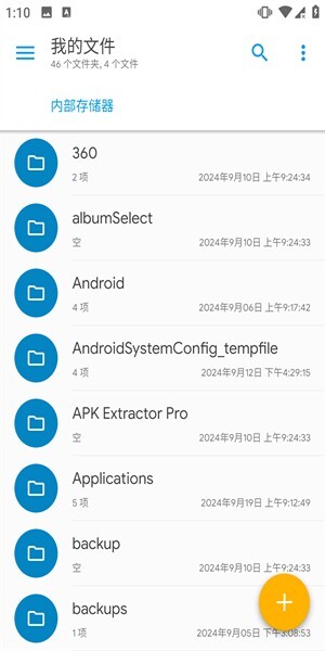 1、打开SolidExplorer软件界面后,能看到其中包含大量文件,借助该软件可以便捷地进行文件存储操作。