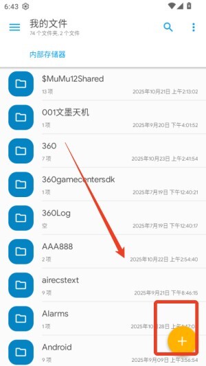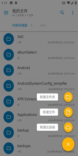 3、点击右下角的加号按钮,通过这个入口可以选择新建文件夹、新建文件、云连接等多种操作选项。