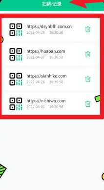 2、进入扫码记录页面后,能够查看以往扫描过的网址以及相应的时间。