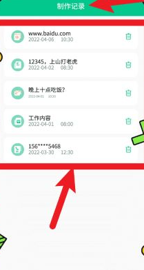 4、在制作记录页面,能够查看过往生成的二维码内容及时间记录,还支持快速查找与一键删除的管理功能。