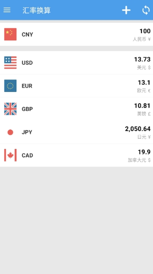 5、还可以增加更多国家的货币,来进行换算。