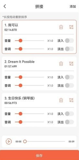 4、还能将不同的音乐拼接成一首音乐。