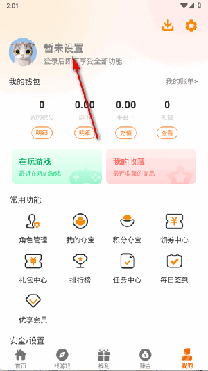 1、打开乐逸趣玩点击我的,再点击头像。