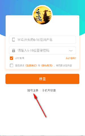2、点击下方账号注册。