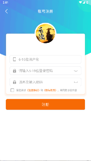 3、输入用户名密码点击注册即可。