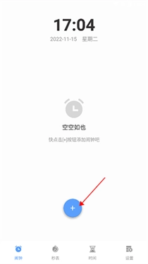 1、点击加号,新建一个闹钟