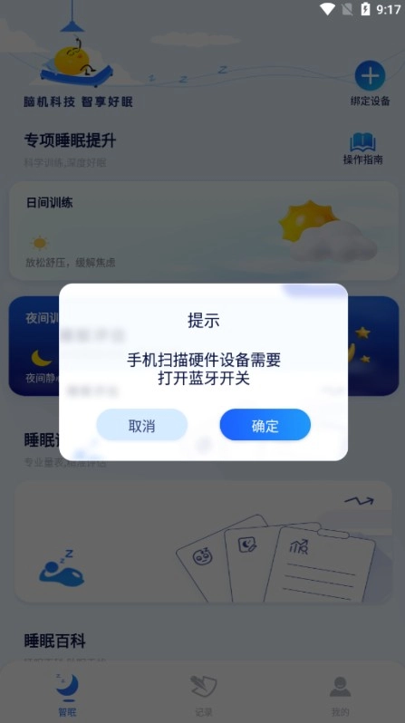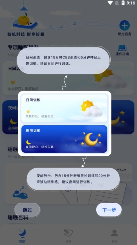 1、成功绑定设备后,即可开启CES训练,该训练包含日间训练与夜间训练两种模式。