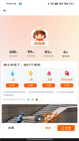 根据个人意愿选择打赏的物品或金额,完成打赏操作。