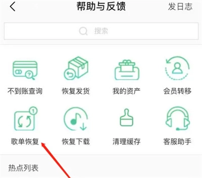 接着进入界面后,在上方的选项中找到“歌单恢复”,然后点击选择它。