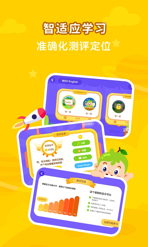 支持语言测评结果展示功能,还能实时反馈孩子的阅读水平,供用户体验。