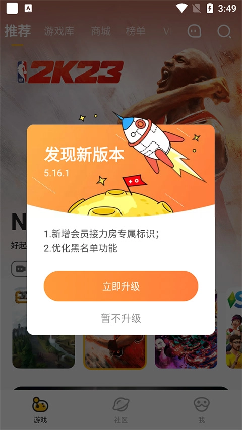 用户在本站下载的菜鸡版本可以阻止更新,其他版本则无法阻止更新。当用户打开本站这个版本进入游戏时,会弹出更新提示,此时只需点击【暂时不更新】按钮,就能成功阻止更新。