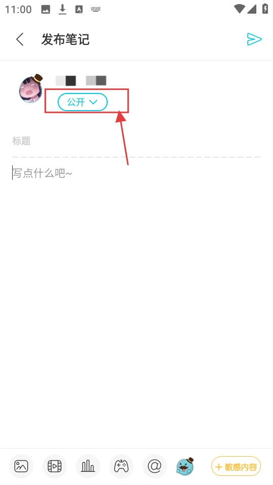在发布笔记的页面点击【公开】按钮,就可以选择笔记的隐私设置,这个功能挺实用的。