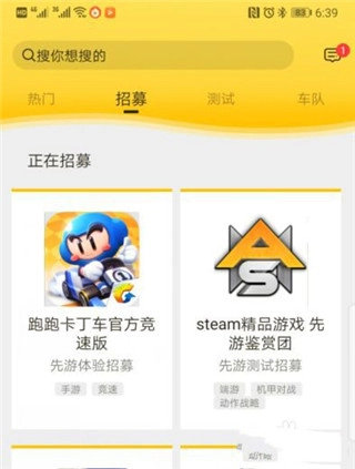 点击进入后可以看到腾讯系列目前招募的游戏列表。