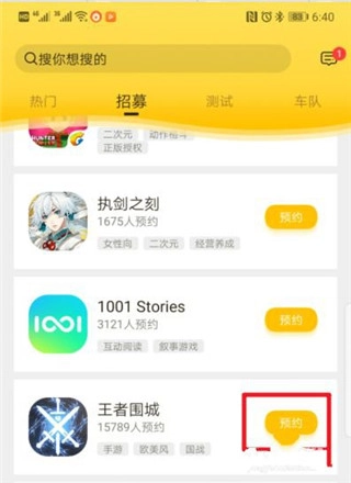 我们向下滑动屏幕,找到自己感兴趣的游戏,接着点击游戏后方的预约选项。