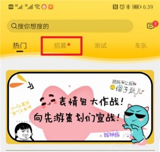 点我们在应用内选择上方的招募的选项进入。