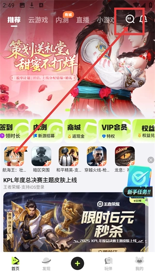 在腾讯先锋首页,点击右上角的聊天图标,就能进入搜索页面,开始查找游戏了。