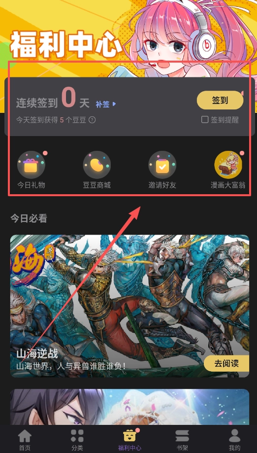 可以多留意系统的动态推荐和福利内容,福利中心里的“今日必看”板块会定时更新由编辑推荐的热门漫画或者新上线的作品。