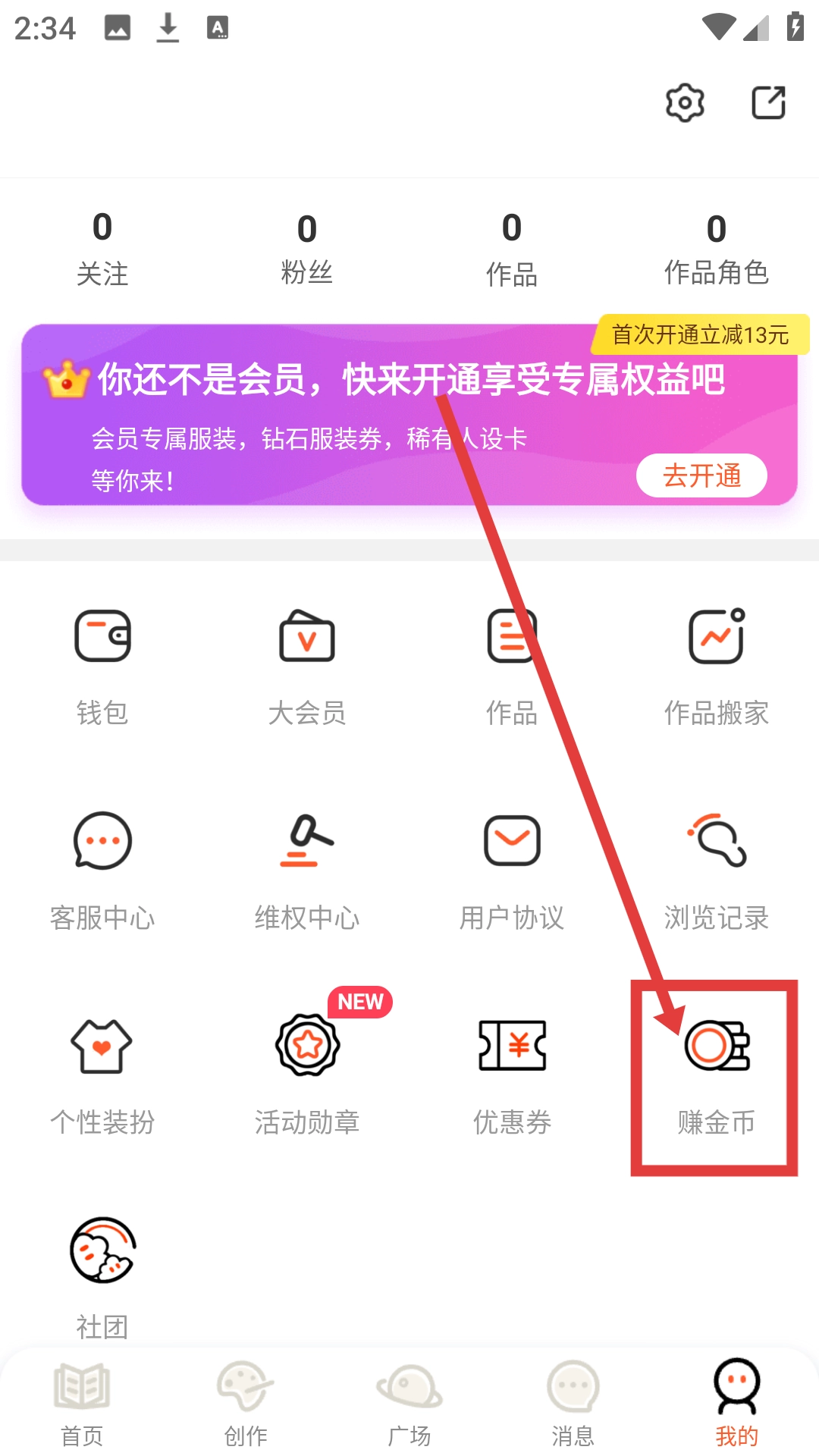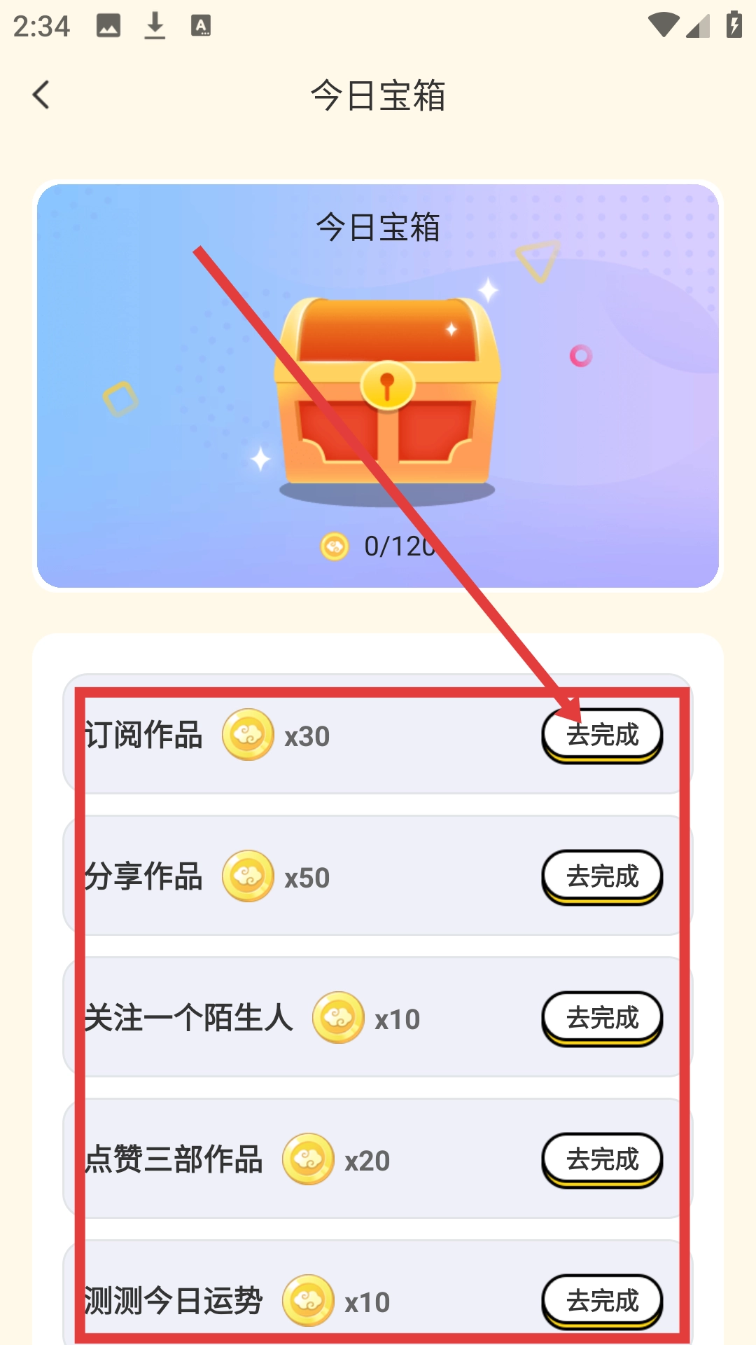 在赚金币页面能看到“订阅作品”之类的任务,点击“去完成”就能通过做任务获取金币了。