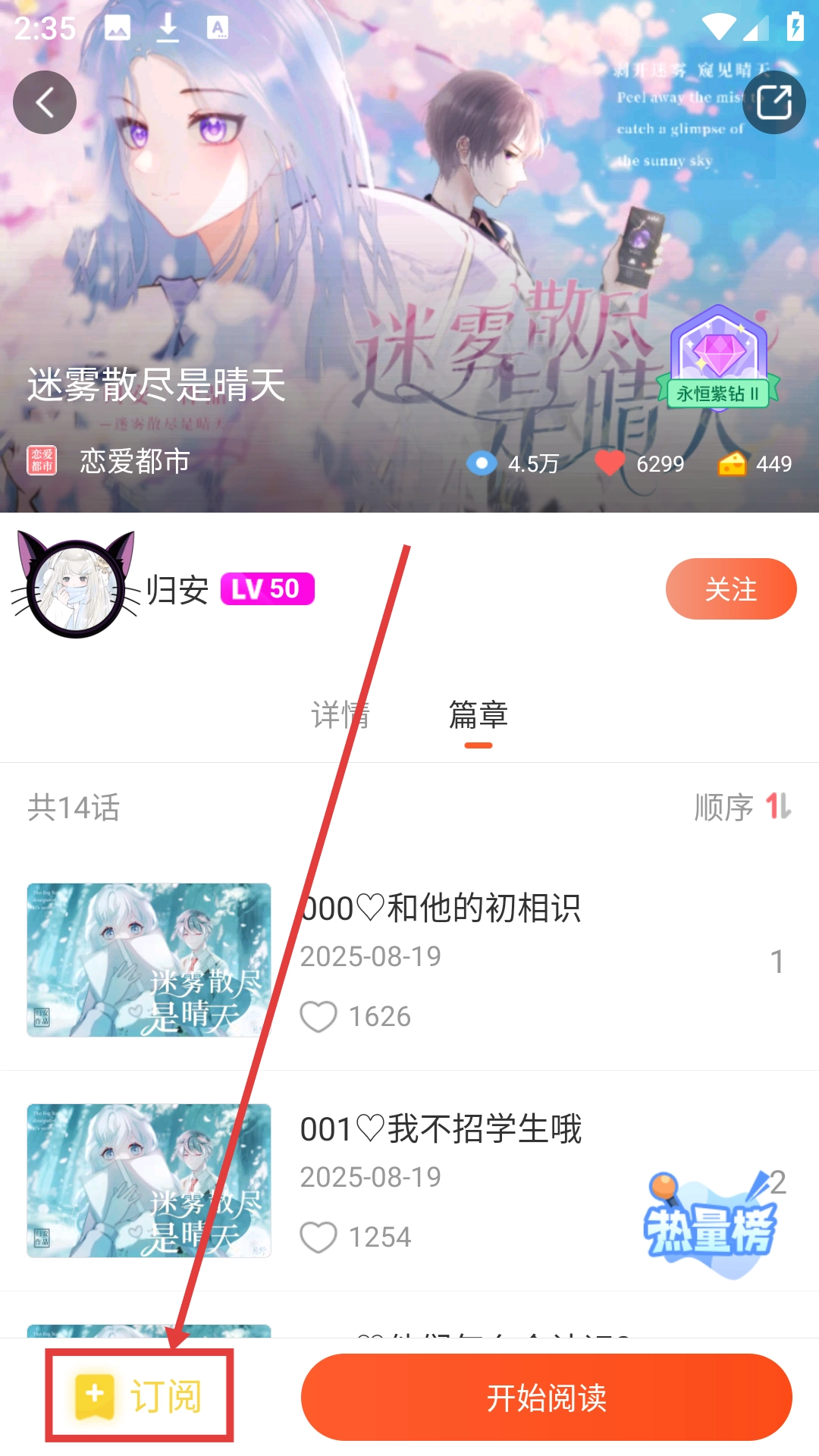 在作品页面点击【订阅】按钮,完成订阅作品任务哦。