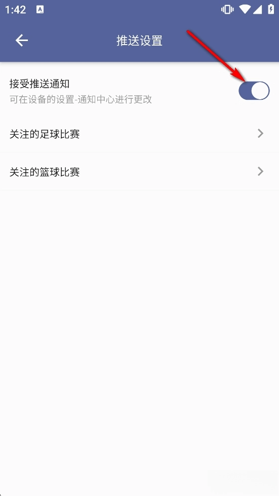 接受推送通知默认是打开的,点击开关