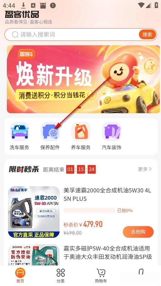 盈客优品最新版是一款专注于各种汽车配件、用品的购物软件,软件中将各类商品详细分类,以便用户精准的查找自己需要的商品购买,还推出了限时秒杀优惠活动,让用户可以享受到活动优惠价,省钱抢购各种好物商品,其中的商品分别有家居百货、食品生鲜、养生保健、美容养护、保养配件、养车服务、汽车装饰等多样化的商品资源,超多的品质好货可以随时购买,明码标价的商品价格,拒绝隐形消费,在这里下单各种养车服务更加的实惠划算,为用户带来更加实惠的养车体验。