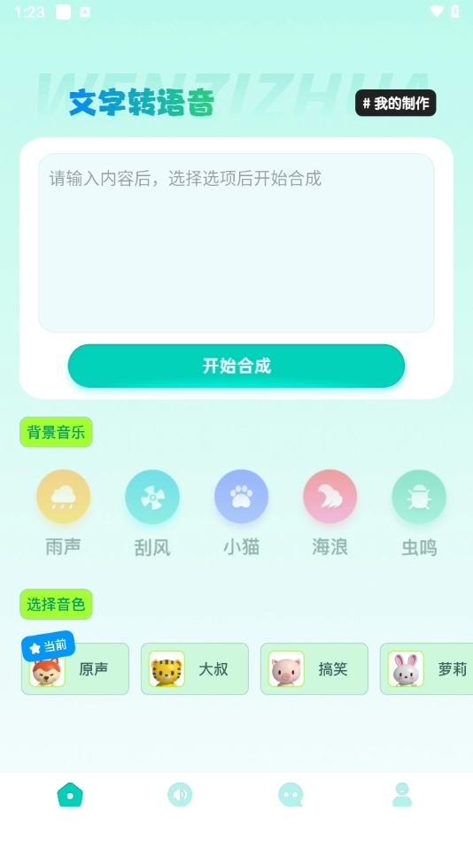软件首页就能找到文字转语音功能,既能将录制的语音信息全部转换成文字,也支持用不同音色录制语音内容,实用性相当不错。