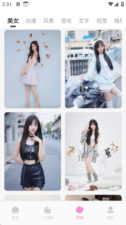探索页面设有多个不同类别的壁纸版块,你可以随时挑选心仪的壁纸来美化设备界面。