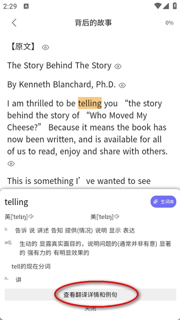 3. 具备一键翻译功能,轻点单词即可实时查看释义,帮助你在阅读时快速理解生词含义。