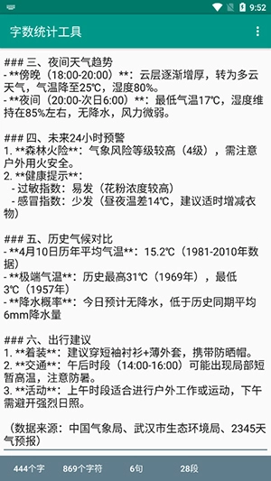 比如说,我自己就曾复制过一篇关于武汉市当日天气预报情况的说明文字。