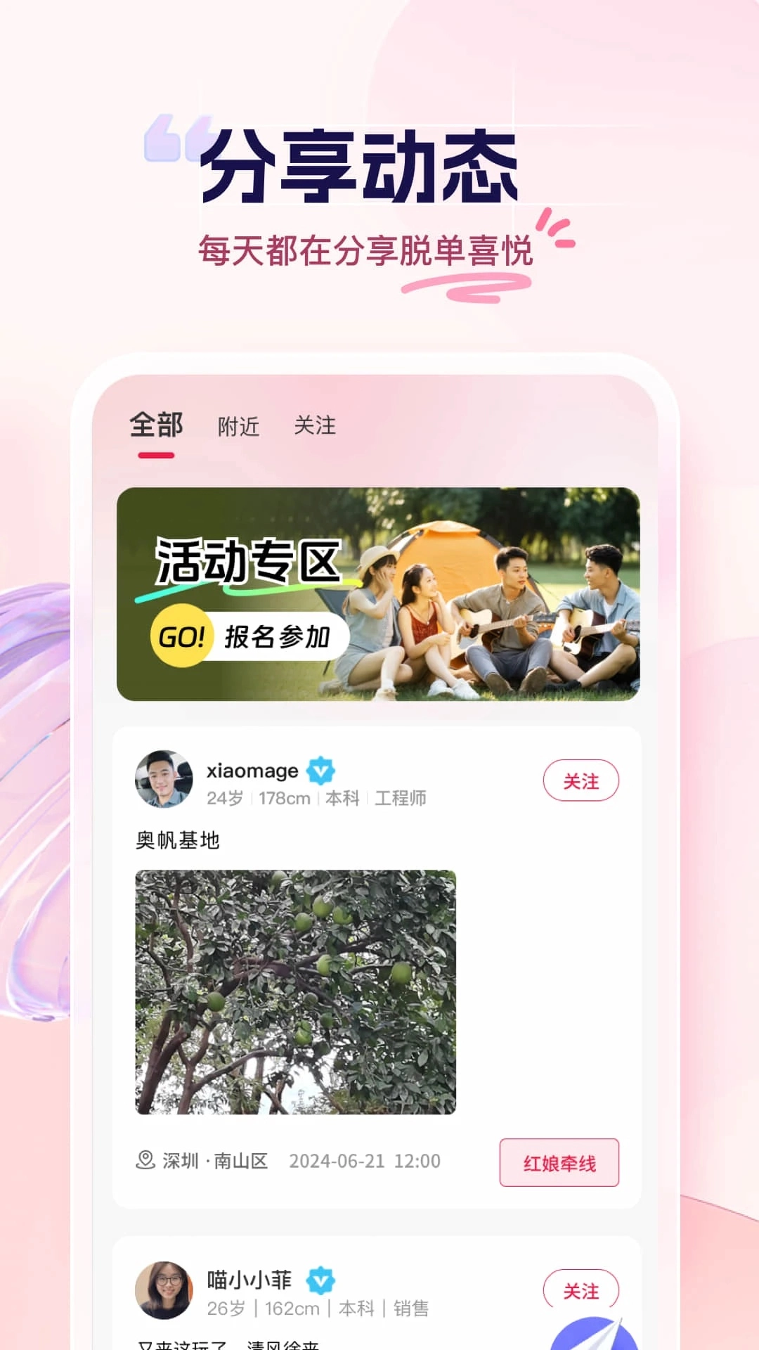 1、依托专业团队与大数据技术的支持,为用户打造沉浸式的脱单体验。