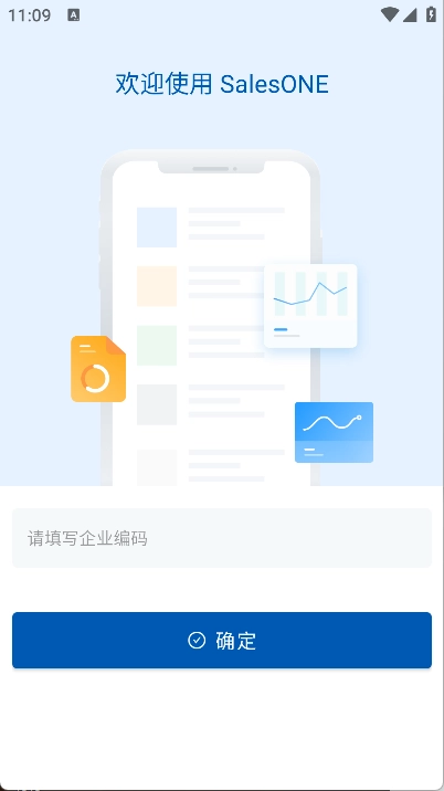 2. 输入企业编码,点击确定按钮,就能进入主页面开启使用流程。
