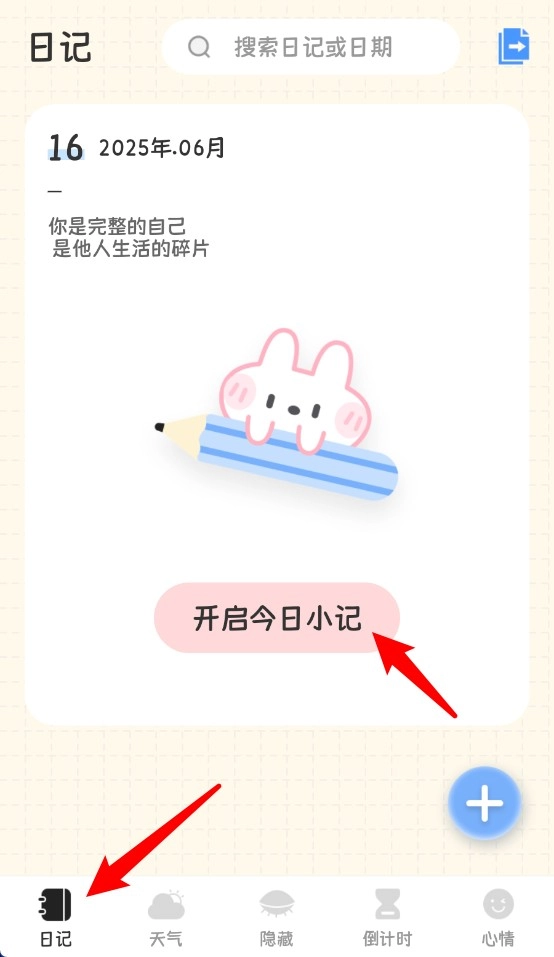 1、在“日记”页面能够记录每日的生活点滴,点击按钮即可开启今日的小记,轻松地写下自己的心情。
