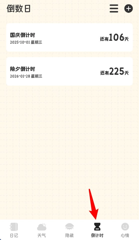 3、“倒计时”页面支持添加节日或重要日期提醒,能精准呈现剩余天数,助力用户更好地管理计划。