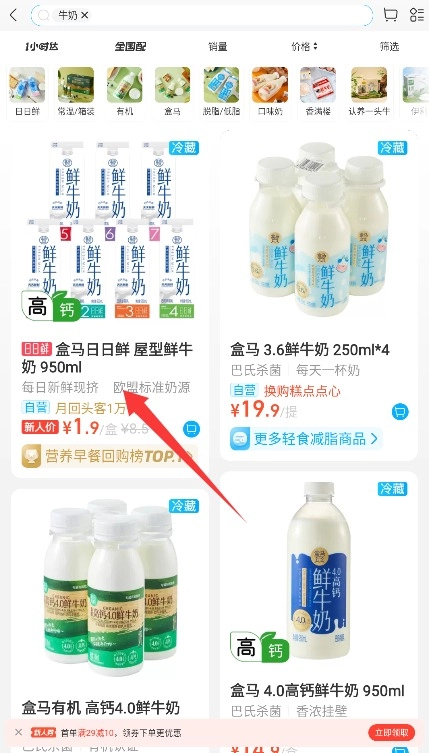 2、可在顶部搜索栏输入商品名称或店铺关键词,以此快速找到所需的生鲜食品与日常用品。