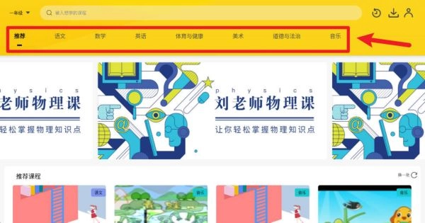 打开平台后,能依据年级和学科分类迅速切换,点击顶部菜单栏进入语文、数学、英语等课程板块,浏览推荐课程或者借助搜索栏输入关键词查找特定内容。