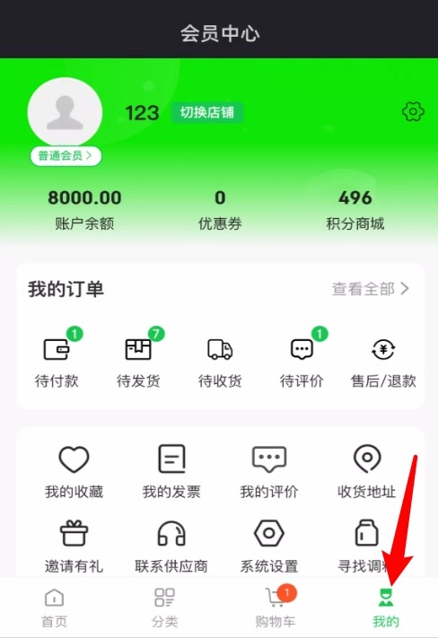 4、会员中心可展示账户余额、积分及订单状态,同时提供发票管理、地址管理等多项服务的入口。