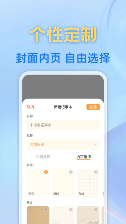 3、支持对笔记内容进行自定义分类管理,方便用户高效梳理和快速查找所需内容,同时提供多种背景模板以及内页背景的切换功能。