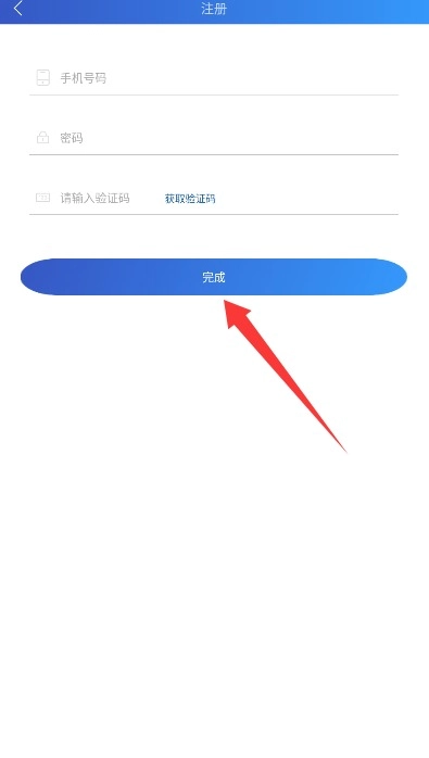 2、在注册页面填写手机号码并设置登录密码,输入收到的短信验证码后点击完成按钮,即可成功开通账户。