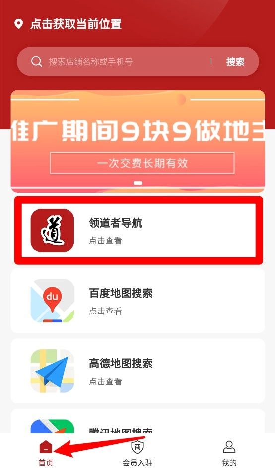 1、点击首页的「领道者导航」图标,就能快速进入导航页面,查看个人或店铺的相关公开信息。