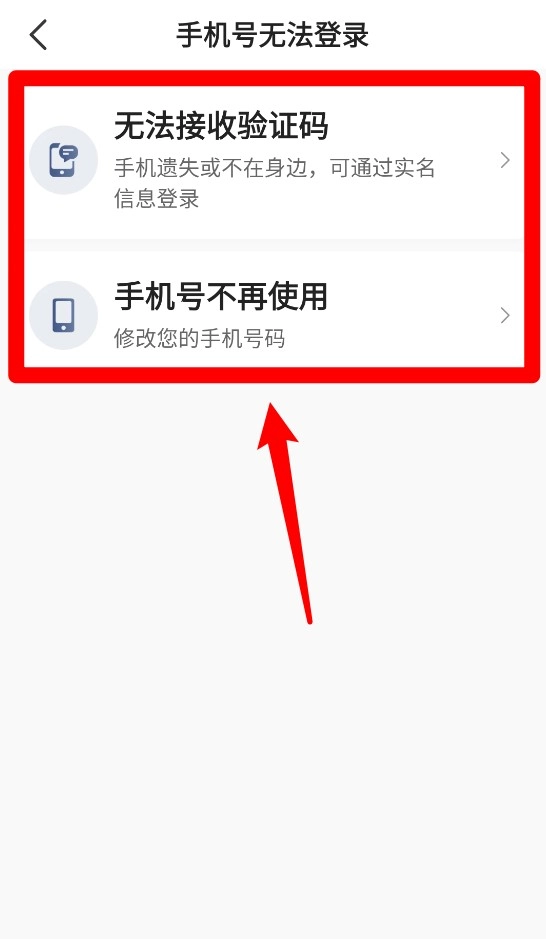2、若手机号无法使用,可点击“手机号无法登录”,选择原因进入后续处理流程。