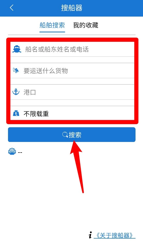 进入“搜船器”功能后,能依据船名、货物、港口以及载重条件来快速查找目标船舶。