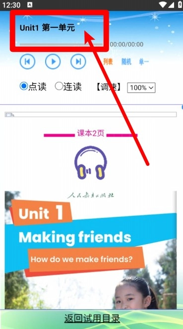 进入试用目录后,可通过课文电子书功能查看内容,还能随时切换单元阅读,避免迷失阅读路径。