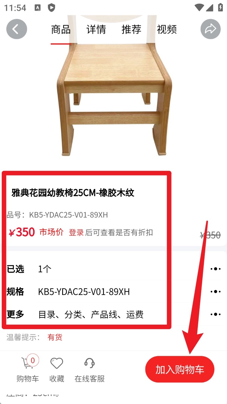 3. 商品详情页会清晰展示参数与库存信息,确认无误后点击“加入购物车”即可完成下单操作。