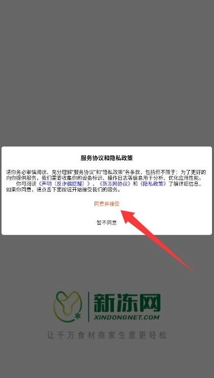 1、首次使用时,请仔细阅读平台的用户协议与隐私条款,点击同意并接受相关选项后,即可进入应用主界面。