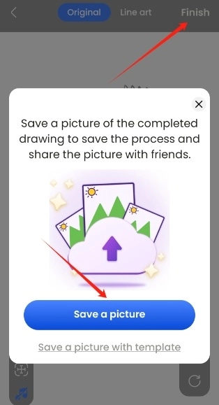 绘画完成后,点击右上角的finish按钮,即可保存绘制好的图片。